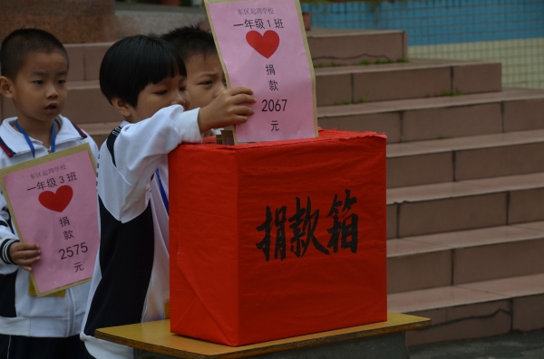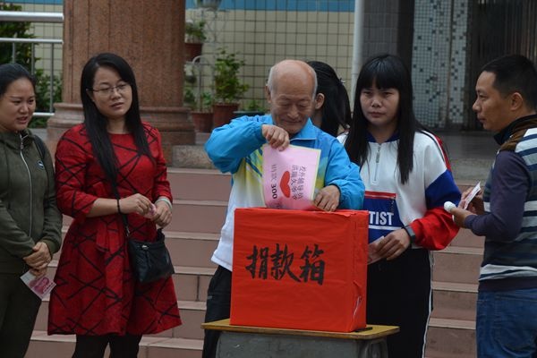 大會第二項,愛心企業(yè)及個人善款捐贈儀式。華南國際吉東教育集團慈善基金捐款10000元、中山市客家商會李金東先生捐款10000元、民樂班學生代表盧女士捐款1000元、校外輔導員洪瑞久爺爺捐款300元、全體教職工共捐款13040元。最后,各班學生代表紛紛上臺為可親可敬的周建華老師捐獻愛心,共捐30720.5元,表達了孩子們對周老師最真摯最美好的祝愿。還有很多家長前來捐款,沒有留下姓名。這次活動共計捐款73260.5元。