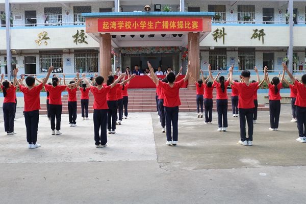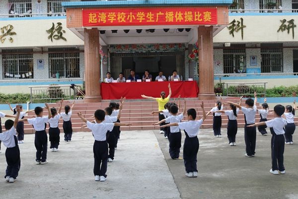 為了豐富校園文體生活,展示學生的良好風貌,培養學生的班級集體榮譽感,起灣小學于2018年4月28日下午舉行第八套全國小學生廣播體操比賽。出席本次比賽的評委有袁繼貴主任、莫康武老師、呂盛老師、曹為軍老師、莫純昌老師。
