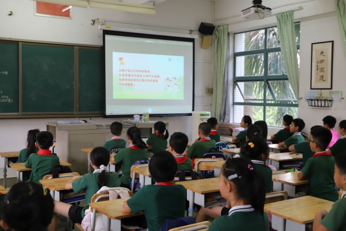 當看到生動有趣的大會報告動畫視頻時,同學們對習總書記“今天做祖國的好兒童,明天做祖國的建設者”、“為建設社會主義現代化強國時刻準備著”的諄諄教導有了更充分而深刻的認識;當說到我們身邊的少先隊員羅悅桐同學這位少代表的事跡時,富有感染力的朋輩演繹和榜樣傳播,在同學們的心中產生了真摯生動的深層共鳴;當品讀到習總書記溫暖而有力量的賀信寄語時,同學們深深感受到習總書記及黨中央對少年兒童的深切關懷和殷殷期望。整節課,同學們挺直腰背,認真聆聽,心中油然生起一股自豪之情。
