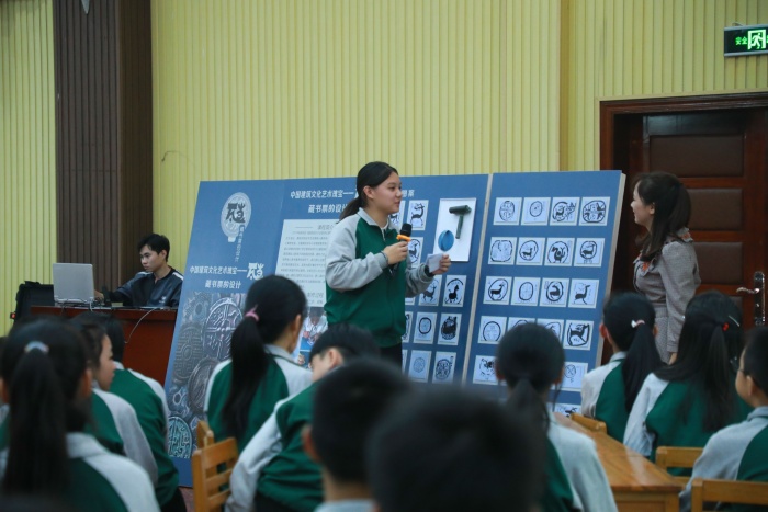 彭章均老師執教的《瓦當》層層遞進,引導學生了解瓦當的相關知識與藏書票文字與圖案的布局方法,設計以瓦當為主題的藏書票,激發學生對民族文化藝術的興趣,傳遞運用所學知識美化生活的愿望。