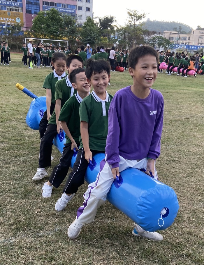 比賽項目豐富,形式多樣。十三項個人競技項目包括爬行比賽、足球踩球、投擲、百米定向、籃球傳準(zhǔn)等,五項集體項目包括集體一字馬、跳長繩繞八字、迎面接力、袋鼠跳、毛毛蟲接力。賽場上,同學(xué)們奮勇爭先,用拼搏激揚(yáng)青春和夢想,用實力展現(xiàn)志氣與豪邁,賽出了水平,賽出了風(fēng)格,賽出了友誼。賽場外,啦啦隊整齊響亮的吶喊聲、助威聲此起彼伏,響徹操場。