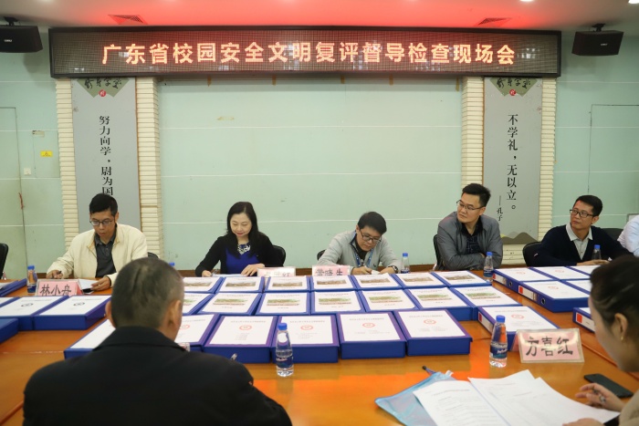 12月9日上午,秋風颯颯,暖陽高照。省教育廳后勤處侯波副處長率領督導檢查組成員:廣東省安保處方喜紅,茂名市教育局安保科何水澄,以及湛江市教育局政安科黃飛鳳等一行來校,對“廣東省安全文明校園”進行復檢。檢查組實地督查中山市東區水云軒小學。中山市教體局辦公室鄒遠程主任,中山市安保科賴輝欽,中山市東區街道教育和體育事務中心盧展紅副主任,東區街道教育和體育事務中心黃曉生,水云軒小學黨支部書記、校長林小舟,副校長黃文燦及吳錦開、吳潔監主任等陪同檢查。