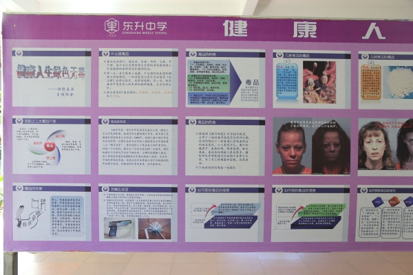 為進(jìn)一步加強(qiáng)東升中學(xué)學(xué)生對毒品危害的認(rèn)識,增強(qiáng)自我保護(hù)意識,為在校學(xué)生營造良好的成長環(huán)境,普及毒品預(yù)防知識,進(jìn)一步提高同學(xué)們抵御毒品的能力和禁毒斗爭的意識,加強(qiáng)以青少年為重點(diǎn)的全民禁毒宣傳教育,6月17日上午,東升中學(xué)承辦了東升鎮(zhèn)“無毒校園”禁毒知識宣傳巡回展覽活動。本次主題活動為東升鎮(zhèn)法治宣傳進(jìn)校園系列活動之一,由東升鎮(zhèn)綜治維穩(wěn)辦、禁毒辦和掃黑除惡辦聯(lián)合文體教育局開展。東升中學(xué)全體師生利用課間和放學(xué)時(shí)間參加了上述活動。