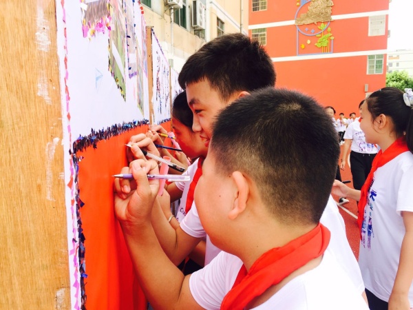 演出結束后,每位學生在畢業寄語墻上寫下了自己對學校想說的話,送給母校最后一份祝福,寫完之后走過“夢想之門”,與母校揮別,與這六年的小學生活揮別,憧憬即將到來的中學生活。