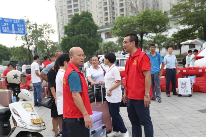 一大早,一輛輛大小汽車、摩托車、三輪車,裝著初三同學(xué)及他們大大小小的行李,車水馬龍般紛至沓來地涌到了學(xué)校校門口。東升中學(xué)師生志愿者快速進入角色。有疏導(dǎo)車輛通行的,有快速卸下學(xué)生及行李的,有幫手搬運行李入校的。不少黨員老師志愿者身穿紅馬褂忙碌其中,也有不少老師素裝上陣,加上學(xué)生志愿者小黃衣們,他們組成了一道風(fēng)景線,讓校園門口變得溫馨、親切有加。初三的同學(xué),見到老師同學(xué)來迎,感覺如回到另外一個家庭;家長們見到老師來接,忙亂的心一下子安定下來。一件件行李很快地交由老師們從車上卸下,又一件件地快速由志愿者們運進校園、運到學(xué)生的宿舍。在老師們勸導(dǎo)下,家長們帶著放心的心情,一輛輛車輛快速離開。就這樣,半個多小時的時間,初三同學(xué)入住學(xué)?;顒泳突就瓿?。