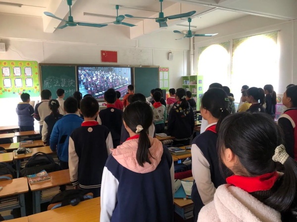 該校為了讓師生們深入學(xué)習(xí)憲法,還采用多種方式進(jìn)行宣傳教育。第一,通過憲法知識宣傳欄和各班級的黑板報布置進(jìn)行潤物細(xì)無聲的教育。第二,學(xué)校安排“紅領(lǐng)巾廣播站”開展為期一周的憲法小常識廣播。通過廣播員們每天一點憲法小知識的播報,增強(qiáng)學(xué)生們的法律意識;第三,結(jié)合該校六年級學(xué)生的學(xué)情,該校將憲法知識與《道德與法治》課程內(nèi)容進(jìn)行結(jié)合,開展了“六年級憲法知識競賽”。通過此次競賽活動,相信六年級的學(xué)生對于知法、懂法有了更深刻的體會。第四,開展“憲法晨讀”活動。12月4日是國家憲法日,該校以此為契機(jī),組織學(xué)生在上午第一、二節(jié)課開展“憲法晨讀”活動。通過升國旗、讀憲法、上法治課等項目,讓學(xué)生們充分感受到了法律的重要性,更將法律意識深深地烙印在學(xué)生們的內(nèi)心。