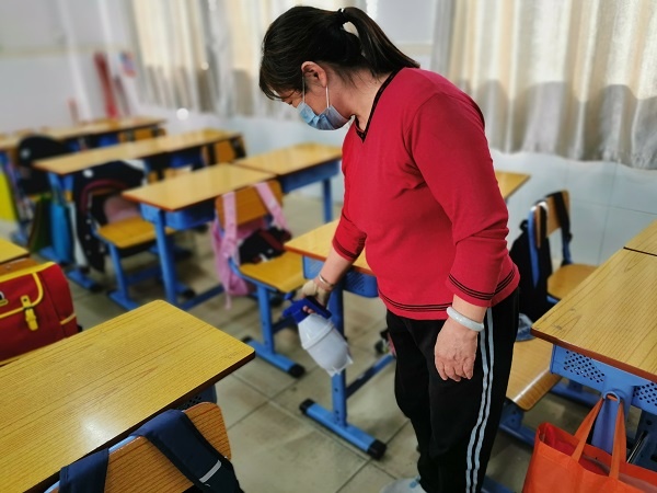 演練活動主要包括晨檢演練和課堂教學演練,晨檢演練包括指引學生從規定的體溫檢測通道按一米以上間隔距離、帶好口罩有序進入校園。若發現學生在體溫檢測過程中出現異常,迅速啟動應急處置流程,由值日教師帶該生到校門口側的臨時觀察區,用玻璃體溫計進行二次體溫檢測,登記學生詳細地址、家長聯系方式、當日身體狀況等信息,上報學校疫情防控領導小組,同時聯系班主任,通知家長,到醫院進一步復查確認身體狀況。消毒防疫組及時對校門口通道及臨時觀察區進行消毒、通風等工作。課堂演練內容為老師在上課過程中,一旦發現有學生精神萎靡,并伴有咳嗽等疑似癥狀,需立即對該生進行體溫測量并及時聯系家長就醫,同時上報學校疫情防控領導小組做好登記跟蹤。還有老師在上課過程中,一旦發現學生出現嘔吐現象,由上課教師第一時間帶其他學生離開教室去備用教室進行心理疏導,并通知班主任及疫情防控組。由消毒防疫組按規范要求對嘔吐物進行消毒并處理,同時教室開窗通風。在處理完嘔吐物并通風至少20分鐘后學生方可返回教室上課。