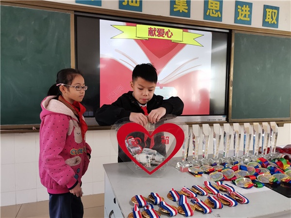接下來,學校分班級進行了“慈善萬人行”捐款活動,各位老師也紛紛獻出自己的愛心。