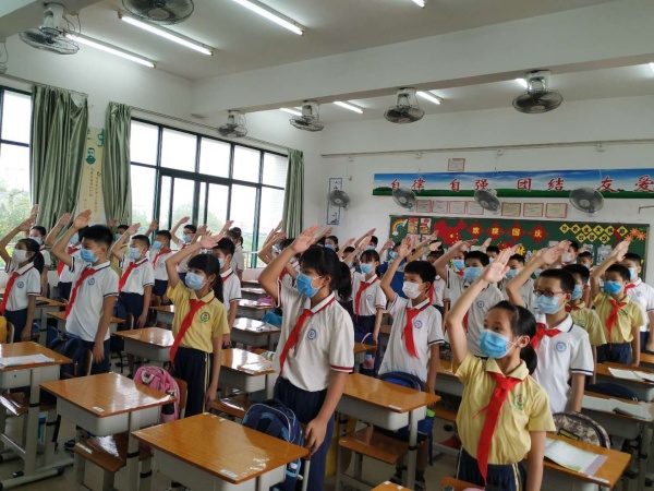 開學伊始,中山市教育和體育局與南方日報中山全媒體新聞部聯合給孩子們送上了一份特殊的開學禮物——“復學第一課”。勝龍小學德育處和少工委根據上級有關文件精神和要求,精心組織,大力宣揚。四到六年級的孩子們在班主任的精心組織下,認真觀看以“天使歸來,英雄開講”為主題的“復學第一課”。