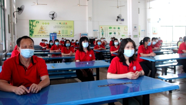早上8:30,全體教職工齊聚階梯室進行防疫培訓。冼學峰校長詳細解讀了《東升鎮勝龍小學2020年春季學期學生返校復學工作方案》,明確返校復學前后工作流程,包括開學前師生的各項工作準備,開學后老師們各項工作常規及注意事項等都一一進行了全面的部署,明確職責,責任到人。通過培訓,全體教職工都能熟知各個崗位工作流程,以及突發事件應急處置方法,為確保復學工作規范有序地開展奠定了基礎。