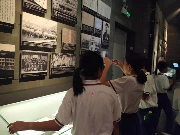 吃過(guò)午飯,稍作休息,同學(xué)們又乘坐大旅游大巴前往第二個(gè)研學(xué)目的地——辛亥革命紀(jì)念館。辛亥革命紀(jì)念館是為了紀(jì)念孫中山領(lǐng)導(dǎo)的辛亥革命活動(dòng)而建的一座專題紀(jì)念館。“開(kāi)辟共和新紀(jì)元——辛亥革命主題展”是辛亥革命紀(jì)念館的基本陳列,展覽面積約4200平方米。一下車,同學(xué)們就被那座外形猶如一方被鑿開(kāi)的巨石般的紀(jì)念館吸引了。來(lái)到紀(jì)念館的入口處,孫中山先生的銅像映入眼簾,他雙眼炯炯有神,為“天下為公”靜靜沉思,他的神態(tài)和形象,使人肅然起敬。大道上矗立的黃興、廖仲愷、蔡鍔 、宋教仁、章炳麟、秋瑾等先軀者的塑像,每個(gè)人都是一頁(yè)艱辛的歷史,述說(shuō)著那封建王朝風(fēng)雨飄搖、起義浪潮此起彼伏的革命年代,給人留下深刻印象。進(jìn)入紀(jì)念館里,同學(xué)們?cè)趯?dǎo)游的帶領(lǐng)下分別參觀了“晚清民族危機(jī)”、“甲午戰(zhàn)敗后的空前變局”、“革命運(yùn)動(dòng)的蓬勃發(fā)展”、“辛亥前夜的斗爭(zhēng)風(fēng)潮”、“辛亥革命高潮的到來(lái)”、“開(kāi)創(chuàng)民主共和制度的新紀(jì)元”、“共和新氣象”、“捍衛(wèi)共和制度”、“尋求新的救國(guó)道路”等九個(gè)展區(qū)。同學(xué)們靜靜地傾聽(tīng)導(dǎo)游的講解,細(xì)細(xì)地觀察著每一件陳列品和雕塑,時(shí)而駐足,時(shí)而低聲交流,無(wú)不為先烈們拋頭顱、灑熱血、視死如歸的精神所感動(dòng)。走出紀(jì)念館,同學(xué)們?nèi)匀恍某迸炫龋娂姳硎荆豪^承和發(fā)揚(yáng)孫中山等革命先驅(qū)始終不渝的愛(ài)國(guó)情操和為實(shí)現(xiàn)中華民族偉大復(fù)興不懈奮斗的不朽精神,增強(qiáng)歷史責(zé)任感和使命感,把對(duì)革命先賢的深切懷念之情和崇高敬意融于學(xué)習(xí)知識(shí),融于振興中華的實(shí)踐中,為實(shí)現(xiàn)中華民族的偉大復(fù)興做出努力!