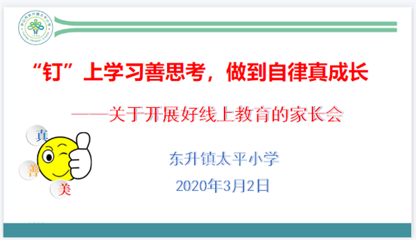 因新冠狀病毒肺炎的影響,學校依舊未能正常開學。為了在疫情期間也能加強家校溝通,讓家長更好地了解學校工作和線上學習相關要求,共同促進學生的健康發展,達到家校共育的一致性和有效性。3月2日晚上,太平小學利用釘釘平臺在線開展“‘釘’上學習善思考,做到自律真成長”主題家長會。