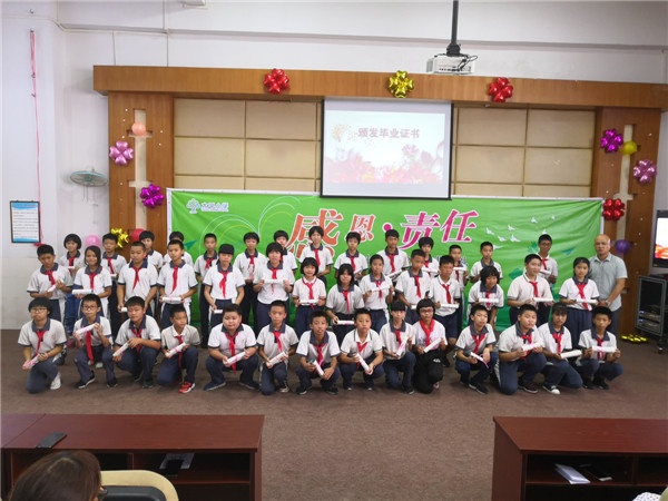接著畢業(yè)生代表與家長代表分別用真摯的話語表達了對母校的依戀,對老師的感激。接著,吳煥林校長為畢業(yè)生鄭重地頒發(fā)了畢業(yè)證書,同學們依次上臺,領(lǐng)取人生第一張正式的畢業(yè)證書——小學畢業(yè)畢業(yè)證。