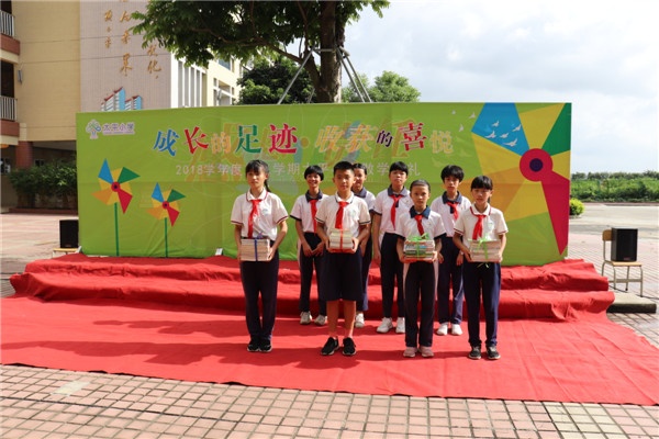 接下來,伴隨著歡快喜悅的音樂,頒發(fā)了本學(xué)期的“優(yōu)秀學(xué)子”、“自律之星”、“五星中隊(duì)”獎(jiǎng)。孩子們手捧獎(jiǎng)狀,露出張張笑臉,自豪地走上紅毯,體會(huì)收獲的喜悅。