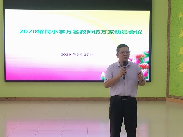 為了進一步加強家校聯系,了解疫情期間孩子們居家生活上及學習上的情況,根據中山市教育和體育局《關于開展“萬名教師訪萬家”大型家訪活動的通知》精神, 5月27日下午,裕民小學羅東校長組織全體教師集中階梯室召開動員大會,要求領導帶隊、教師全員參與,積極開展家訪活動。