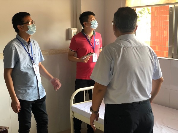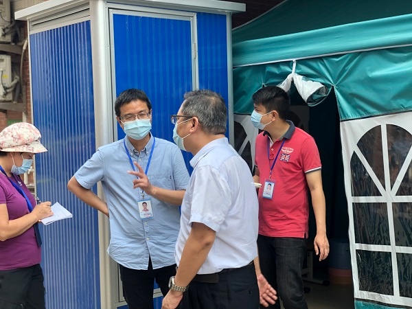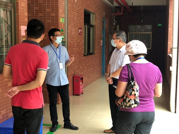 市委疫情防控督察組在羅東校長以及多名學校行政的陪同下巡視了校園,對學校疫情防控的各個區(qū)域進行檢查。從學生入校離校的門口、校醫(yī)衛(wèi)生室、健康觀察室、學生飲水處、學生廁所,再到課室,其中重點關(guān)注了入校緩沖區(qū)、體溫檢測區(qū)、臨時隔離觀察區(qū)等防疫區(qū)域以及課室的布置和預防交叉感染工作流程。