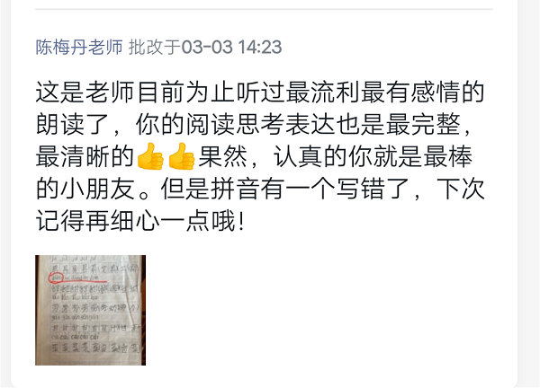 三(2)班陳潤笑老師每天都會對學生的學習態度、作業質量等進行評價并公開表揚以調動學生的積極性;六(3)班胡彩蘭老師在線上與同學們一起批改檢查作業,既教會了學生如何檢查作業又提高了學生在課堂上的參與性;二年級三個班語文老師一天打三個電話交流完善教學計劃;李思妮老師為了檢測學生是否有認真觀看學習視頻,在錄課時設置了隨機抽簽環節;梁月顏老師非常耐心地教導孩子要注意每一個小細節;溫小玲老師、林小慧老師、馬慧婷老師、羅華嘉老師、謝真彩老師用“小作文”式評語;曹發月老師、唐莎老師、李依琳老師用“表揚、鼓勵”式評語,讓學生得到有效的指導和積極的鼓勵,大大提高了學習的激情。