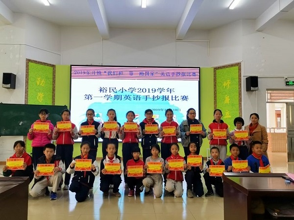 為提高學生學習英語的興趣,推動師生對“一帶一路”國家節日文化的了解,增進“一帶一路”國家間人民的友誼,并響應東升鎮文體教育局英語中心教研組的號召,裕民小學于2019年11月份開展了“我們和一帶一路國家”英語手抄報設計比賽,并于12月10日下午進行了頒獎。