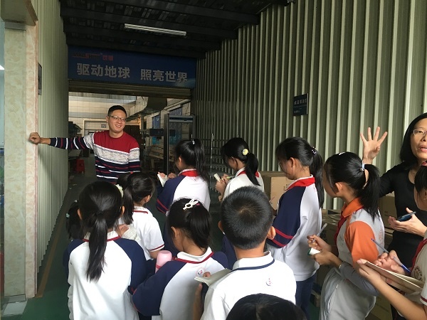 同學們帶上筆記本,認真地記錄著。公司講解員帶領同學們參觀生產車間,按生產的工序,向同學們逐一介紹、講解了LED路燈、太陽能路燈的制作過程。同學們聽得津津有味,有的同學還樂此不疲地向工人叔叔、阿姨詢問制作的要點、技巧。