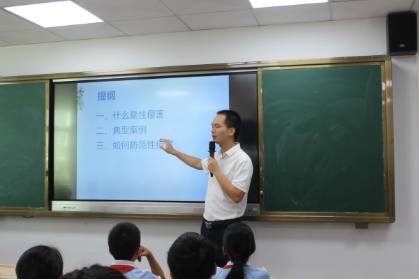 本次活動華盛學校李春紅主任主持,由東升鎮司法所安排的關錦強律師主講。關律師首先通過幾個典型的案例讓學生懂得了哪些行為屬于性侵害,并且了解到構成猥褻兒童罪,既包括行為人主動對兒童實施猥褻,也包括迫使或誘騙兒童做出淫穢動作;既包括在同一物理空間內直接接觸被害人身體進行猥褻,也包括通過網絡在虛擬空間內對被害人實施猥褻。接著,關律師又通過互動向學生們傳授了一些方法去面對性侵害行為。最后關律師告誡學生在抵抗性侵的同時也要保證自己的生命安全,生命安全最重要,任何情況下,生命是第一位的。