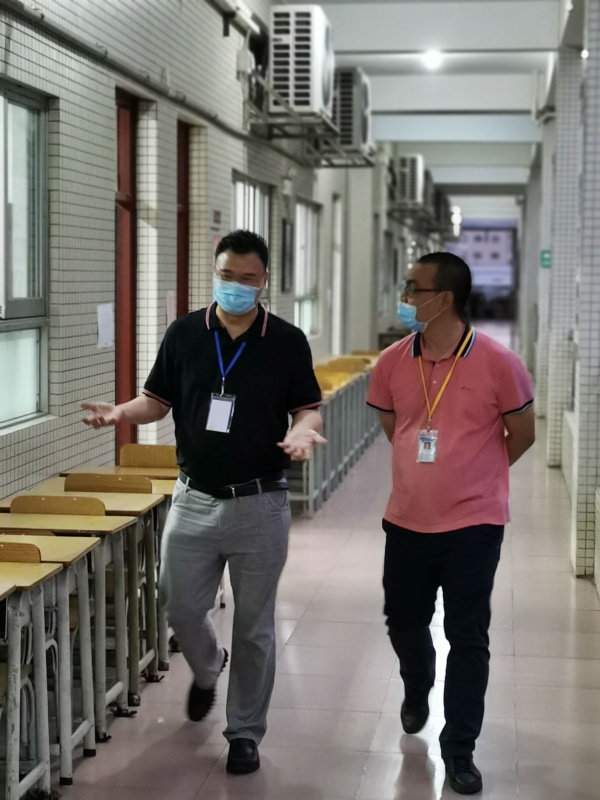 5月2日晚上19:00、晚上20:00,東升鎮黨委副書記李健華同志一行,東升鎮教育事務指導中心張宏齊主任、王庚兒教研員一行先后蒞臨東升中學調研指導五一假期初三學生在校防疫工作。東升中學吳耀光校長及部分行政人員全程陪同檢查。吳耀光校長亦先后兩次作了工作匯報。