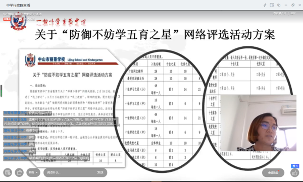 接著,是由麗景學校初中部教導處張青梅主任作題為《“疫”起努力,美好由“心”》的工作經驗介紹,為全體與會人員介紹了麗景學校初中部如何在線上對學生進行及時有效的評價的實踐經驗。該校的特色評價主要表現在以下幾個方面:1、利用網絡平臺在全校范圍內開展“防御不妨學五育之星”網絡評選活動;2、充分利用各班級小組管理,促進學生的自主管理與自我成長;3、充分利用“愛米云助教”平臺的優勢,通過數據反饋來分析學生的學習情況,從而科學準確地評價學生;4、老師根據個人教學特點,多角度評價學生。通過張青梅主任的介紹可以看出,麗景學校對學生的獨特評價,很大程度上激發了學生學習的主動性和積極性,收到了很好的教學效果和社會反響。