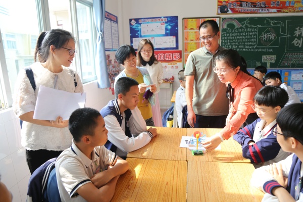 為更好地響應東升鎮推動德育“一校一特色、一班一亮點”工作號召,東升中學積極開展特色班級建設工作。11月12日上午,東升鎮特色班級評估5人小組在東升鎮教育事務指導中心德育專干羅燕珍老師的帶領下,對東升中學初二(10)班(亦稱“十軒閣”和“華為班”)申報“特色班集體”進行了實地評估和考察。該班班主任劉瓊玉老師組織學生在課堂進行了題為《信息引領發展,德育借“翼”(e)飛行》的特色項目展示,獲得了評估組老師們的高度贊揚。本次“實地考察”是東升鎮“特色班集體”評比的第二階段。參加此次活動的還有德育處馮釗順副校長、黎洪鋒主任、陳偉副主任、黎國明副主任和東升中學班主任工作室主持人葉永春老師。