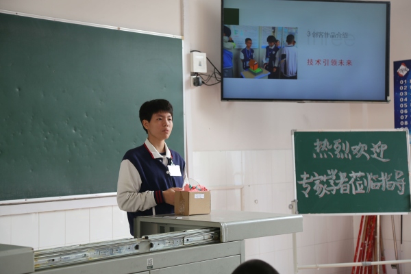 東升鎮特色班級評估5人小組從班級的環境文化建設,制度文化建設、行為文化建設、精神文化建設及特色文化建設等幾個項目進行了全面地檢查評估。評估小組首先觀看了初二(10)班兩年來班級管理及學生成長的電子雜志視頻專輯。短片回顧了兩年以來班級經歷的風風雨雨和孩子們努力獲得的豐碩成果。看著曾經的那一張張照片的留影,感覺那一幕幕依然歷歷在目,觸手可及。然后,大家觀摩了該班的特色班集體特色文化展示。初二(10)班特色文化建設的核心內容是“信息科技引領學生發展”和“創客實踐激勵學生成長”,在全鎮都頗具影響力。特色文化展示活動主要有以下環節:1、VB編程展示。請鎮VB編程大賽二等獎獲得者文智華同學上臺為大家演示VB編程。2、微信公眾號信息發布演示。請陳雅靜同學利用微信公眾號發布“家長會通知”信息。3、創客作品介紹。《變色玫瑰》作者原子瀅、《智能開關門》作者韋俊明、溫青嬈上臺展示作品并作詳細說明。4、每一個小組,都同心協力地臨時組裝不同的創客作品,熱情地向評委和本校領導展示自己小組的成品,并解說其工作原理。同學們精彩的表現獲得了大家的一致好評。接著,評估小組還對初二(10)班的班級文化布置進行檢查評估。評估小組的老師們認真的查看了班級的每一個角落,看到學生們布置的教室環境,老師們不約而同地拿出手機不住地拍照。的確,初二(10)班有引導心靈的班風班訓,有啟迪智慧的創客園地,有滋養心靈的感想告白,還有弘揚個性的榮譽榜和有構思巧妙的黑板報……同學們把一面面無聲的墻壁,變成有聲的教育,使班級充滿團結活力,充滿積極進取的文化氛圍,讓班級成為每一個學生溫暖的家,為校園增添了新的文化亮點。