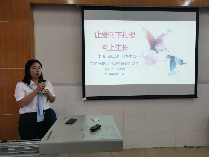 為夯實中山市中小幼學校后備中層干部人才,提高干部隊伍整體素質,來自中山市各中小幼學校的30位教師前往華南師范大學參加為期6天的中山市2020年后備中層干部素養提升培訓項目。10月26日下午,中山市阜沙鎮豐聯小學黃婷婷主任與全體教師分享了在中山市2020年后備中層干部素養提升培訓項目中的心得體會,共同交流討論教育工作者應如何實現職業理想與幸福。