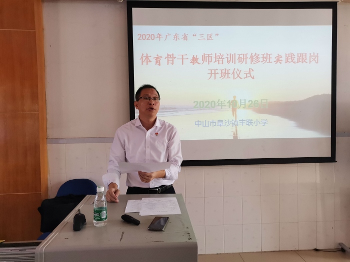 10月26日,2020年廣東省“三區”體育骨干教師培訓研修班實踐跟崗開班儀式于豐聯小學舉行,在開班儀式上,豐聯小學詹前秒校長為參訓教師們進行了主題為“體育教師的專業成長與教學風格凝煉”的講座。