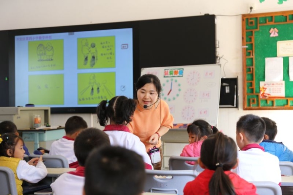然后由阜小李亞林老師同上《認識鐘表》一課。李老師由鐘聲引入,通過大量的生活實例和大量動手操作活動,最終在觀察比較中認識鐘表,并發展學生的空間觀念。
