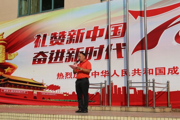 隨著主持人慷慨激昂的開場辭,學校國旗護衛(wèi)隊莊重地帶領全體師生舉行了升旗儀式。隨后,梁業(yè)昌校長作了《愛國從我做起,愛國從愛校做起》主題演講,號召全體師生牢記歷史,堅定信心,勇于擔負時代新使命,為新中國的建設貢獻自己的力量。