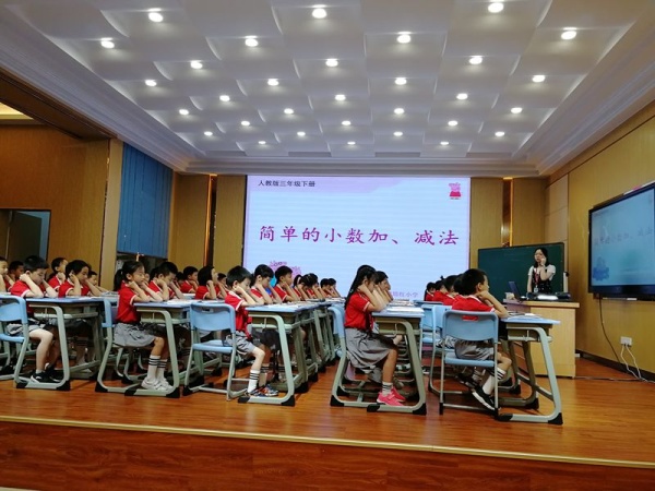 此次活動先由阜沙中心小學吳岳標老師進行較為傳統的授課,通過精講多練讓學生掌握鞏固所學內容,吳老師在練習的設置上很有梯度,由淺入深,由易到難,由單一到多樣,符合學生發展規律。然后再由培紅小學的范丹萍老師進行對分課堂,范老師先用了9分鐘對簡單小數的加法進行精講,然后對簡單小數減法進行留白,給予學生自主討論時間,讓學生自己發現總結小數加減法計算算理,充分發揮學生主體教師主導的作用。接下來先由各校的聽課教師進行點評,各位老師中肯地指出了兩節課的優缺點,有利于任教教師的不斷進步。最后由兩校的代表分別作數學科組建設的簡要介紹。
