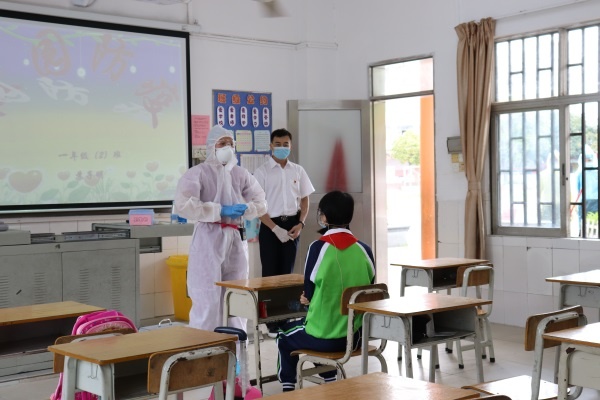 校園安全無小事,在新型冠狀病毒流行的今天,為了進一步保障校園師生生命安全和身體健康,5月9日下午,阜沙鎮羅松小學舉行了校園新冠肺炎疫情防控應急演練,全體教職員工、行政參加了演練。演練中,阜沙鎮黨委副書記孫海卿、文教衛計局局長黃桂生、社區衛生服務中心主任黃極信、教育事務指導中心主任徐瑞欽出席,并全程觀摩了演練。