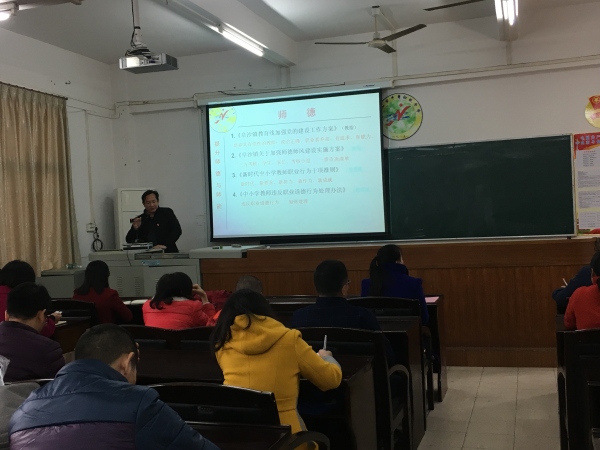 最后,在師德師風的建設上,何杰華校長對師德建設要求的十項規定進行了詳細的解讀,如一票否決,處罰學生的方式,對待家長的宴請、禮物等。并針對牛角中學的實際教學工作提出了具體的指導與要求。