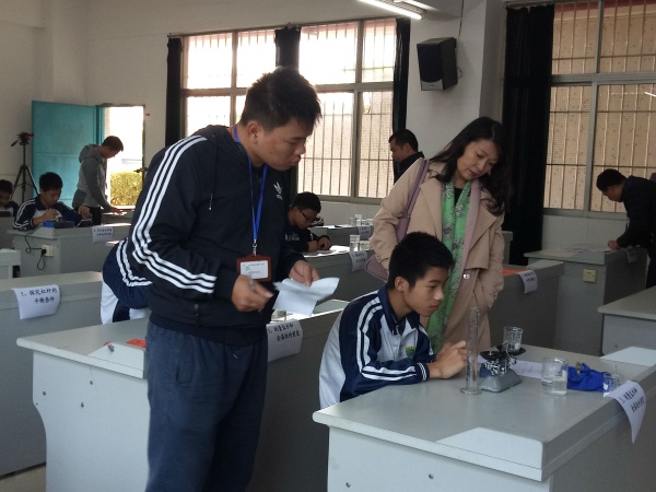 考核前一周,徐瑞欽副主任就考試規程及注意事項的作了詳細說明,并按規定從九項考試題目中抽取六個題目給學生準備。物理老師們安排課程訓練,精心布置考試現場,做好考試準備。使得考試工作順利,圓滿的完成。