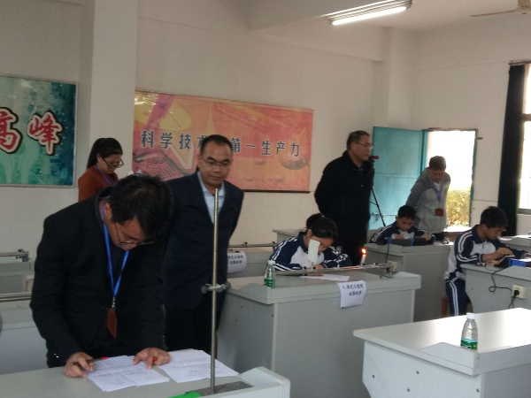 考試過程中,首先是學生自己抽簽抽取考試的題目,由教指中心領導的評委小組進行監考。學生們有條不紊的抽簽,并且熟練而規范的進行考試。期間,中山市巡考組的領導陳源斌,邱慎明,鄧明潔對牛角初級中學的實驗考核進行了巡視。并且肯定了實驗考核工作到位,有序,還交流了對初中物理實驗考核的一些意見。