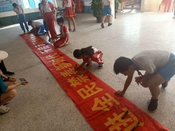 隨后,五、六年級的學生在“奮進全民禁毒新時代,開啟示范創建新征程”的橫幅上鄭重地簽下了自己的名字,表達了不為毒魔誘惑,珍惜生命,拒絕毒品的決心。活動過程中,同學們對毒品知識有了更直觀的了解,對毒品危害有了更深刻的認識,使他們受益匪淺。五(2)班的張釗源同學表示:“拒絕毒品從我做起,首先我們要自己做好不沾毒、不染毒,也要盡自己微薄的力量去宣傳不要吸毒。”