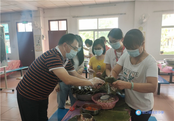 農歷五月,鶯歌燕舞,又到粽葉飄香的時間。在端午節即將來臨之際,為繼承和發揚民族優秀傳統文化,營造歡樂、祥和的端午節日氛圍,6月24日上午,港口鎮民主小學利用大課間時間在學生飯堂舉辦了一場別開生面的教職工包粽子比賽。