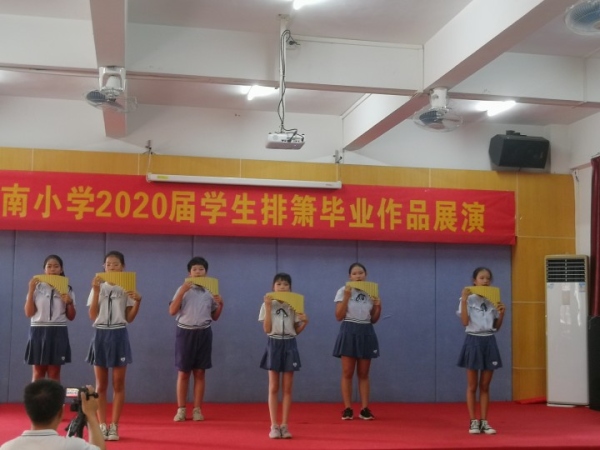活動中,2020屆畢業(yè)學(xué)生還進行了畢業(yè)作品展演,他們用深情、悅耳動聽的排簫曲表達著自己六年在校時光的美好。最后,六年級學(xué)生吹奏一首《友誼地久天長》結(jié)束了此次活動,美妙的排簫聲在下南小學(xué)校園里回蕩。