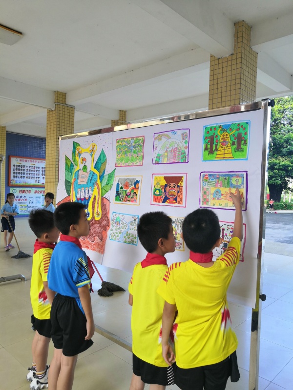 到了6月12日下午,中年級組“自制紙飛機留空計時賽”在足球場進行。學生們紛紛都在比較誰的紙飛機留在空中的時間長。最后,中年級組四(2)班周藝可獲得了第一名。高年級組的“水鄉和融入科技創意畫”在6月15日展示在學校的大堂中,高年級組的學生們把自己的科技創想融入進了繪畫中。此次高年級組的“水鄉和融入科技創意畫”一等獎分別是五(1)班吳敏琪、五(2)班黎紫琪、六(1)班黃樂韻、六(2)班黃紫晴。