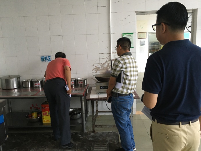督導小組在校長劉琳、副校長周世敏及各部門行政陪同下,實地查看了學校衛生室、留觀室、防疫物資儲備室、教學樓、食堂、洗手間、保安室等場所。在檢查過程中,督導小組著重了解了學校的各項制度的完善和落實,門衛處進出管理、食堂用餐安排、教室、功能場室等場所的消毒過程和方式。