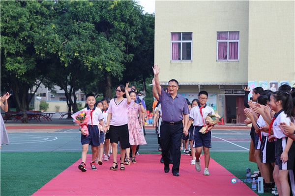 濃濃尊師意,感恩教育主題活動。9月10日早上,全校師生集中到操場進(jìn)行了“感謝師恩”主題活動。情系教師,愛滿校園,師生共走紅毯,鮮花簇簇感師恩。美妙的音樂聲中,老師們牽著孩子的手走過紅地毯走上舞臺,并接受學(xué)生們的獻(xiàn)花、敬禮與祝福。今天,老師們是最美的主角。隨后,李校長在活動上向全體教師致以節(jié)日問候,希望全體老師牢記教育使命、不忘育人育才初心,勉勵老師們辛勤耕耘,發(fā)揚(yáng)民主精神,攜手共創(chuàng)更輝煌的明天。“靜靜的深夜群星在閃耀,老師的房間徹夜明亮……”羅樊老師和同學(xué)們帶來朗誦和書法表演《師恩似海 桃李芬芳》。同學(xué)們聲情并茂,聲聲洪亮,句句動情,以自己的方式表達(dá)了對老師的愛和感激。舞蹈隊(duì)的孩子們以一首歡樂的舞蹈向老師們獻(xiàn)禮。頓時(shí),清晨的校園里充滿了濃濃的節(jié)日氣氛。最后,全校師生一起唱響《聽我說,謝謝你》,整個活動推向了最高潮。