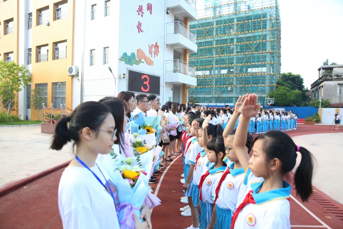 莊嚴的升旗儀式后,少先隊代表為老師們獻上了誠摯的祝福,發自肺腑的話語表達了對教師深深的敬意與感恩。接著,榮獲2020“中山市優秀教師”稱號的教師代表關家聲老師上臺發言,他道出了廣大教師的心聲——為了學生的健康成長,為了黨的教育事業,我們愿意默默奉獻、無怨無悔!