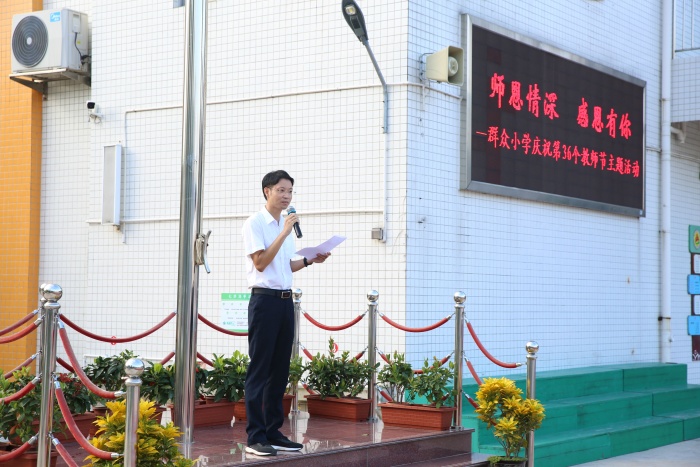梁銓華校長發表了致辭,他向全體教職工送上了節日的祝福,充分肯定了一直以來為孩子們辛苦付出和無私奉獻的老師們,并希望老師們牢記時代賦予教師的重任,為培養德智體美勞全面發展的社會主義建設者和接班人作出新的更大貢獻。希望同學們不忘黨恩、不忘師恩,好好學習,用實際行動報答黨和政府的關愛之恩、老師的教育之恩!