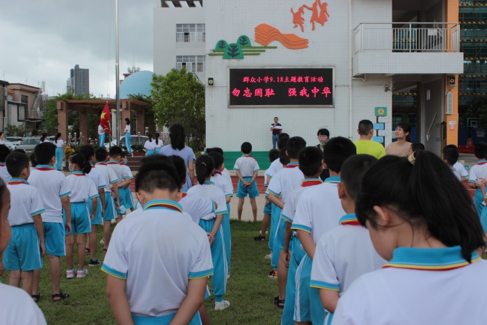 為紀念“九一八”事變發生89周年,進一步推進社會主義核心價值體系建設,大力弘揚愛國主義精神,廣泛進行愛黨、愛國、愛社會主義思想政治教育,弘揚和培育民族精神。9月18日上午,群眾小學舉行了以“勿忘國恥,強我中華”為主題的“9·18”主題教育活動。
