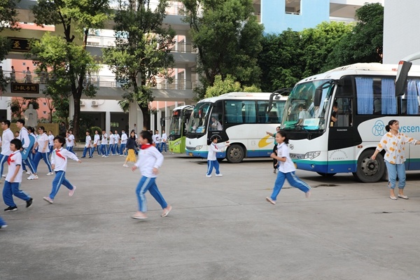演練中,當遇到緊急情況時,老師會揮動小紅旗,看到揮動小紅旗時,司機迅速停車,打開車門,跟車老師要求學生保持鎮定,先解開安全帶,并按照“由前到后,先左后右”的順序依次從車的前門和中門安全撤離。在離車50米外的區域有序集合,再由老師快速清點人數,以確保每個學生的安全。活動的最后,由王學坤副校長對此次演練活動進行小結。他對這次安全演練活動給予了充分的肯定,并希望全體師生牢記乘車要求,遇到突發情況科學冷靜應對,把乘車安全牢記心中。