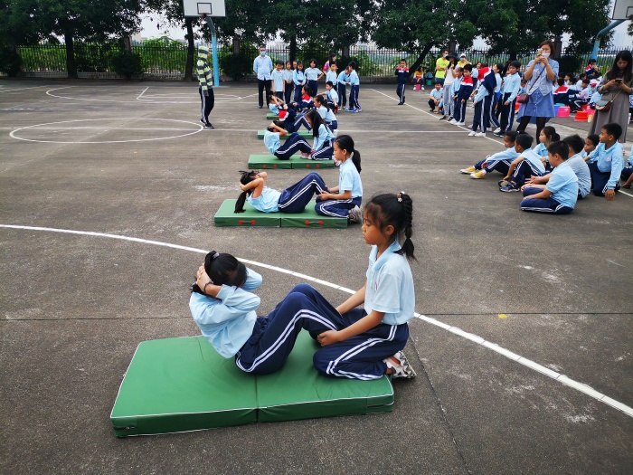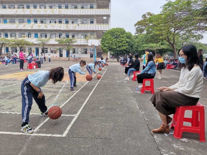 迎著颯爽的秋風(fēng),鏗鏘的出場(chǎng)音樂,全體同學(xué)排著整齊的隊(duì)列來到校運(yùn)會(huì)比賽場(chǎng)地。比賽分為低高兩個(gè)競(jìng)賽單元,比賽項(xiàng)目種類豐富,兼顧競(jìng)技性和趣味性。裁判老師們都已就位等待,隨著裁判長(zhǎng)的一聲哨響,精彩的比賽正式開始了,首先進(jìn)行的是籃球比賽,一個(gè)個(gè)籃球跳躍在同學(xué)們的手里、腳下,運(yùn)動(dòng)健兒們揮灑著汗水,觀眾席里也爆發(fā)了一陣一陣的吶喊聲,各班同學(xué)都在激動(dòng)喝彩,為參賽選手們加油!緊接著,毛毛蟲往返接力開始了,可愛的毛毛蟲載著同學(xué)們?cè)诓莸厣吓苤錆M童趣。緊隨其后的是班級(jí)跳繩比賽和投擲,運(yùn)動(dòng)健兒們都為班級(jí)榮譽(yù)拼盡全力,最后進(jìn)行的是接力往返跑,全力沖刺,盡情歡呼,濃濃的凝聚力在同學(xué)們心里成形、發(fā)酵。