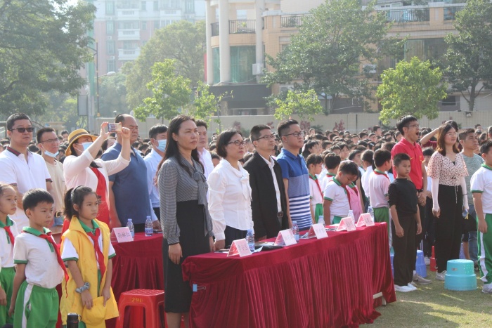 雄壯的進行曲奏響,運動會開幕式開始了。港口鎮黨委委員羅希京、港口鎮教體文旅局局長冼偉明、港口鎮教育和體育事務中心主任劉憲君和副主任張育文、港口社區居委會副書記蘇林坤、勝隆社區居委會治保會主任梁鎮中以及各年級家委會會長出席了本次運動會開幕式。旗面迎風招展,國旗、校旗、彩旗率先入場。爾后,各個年級的特色方陣有序進場。各個年級的方陣隊伍用舞蹈、武術操、情景劇等方式向大家分別展現了白衣天使、軍人戰士、公安干警、黨員群眾等奮戰在疫情一線的情景,向那些堅守在崗位,抗戰在一線的逆行者們致敬!