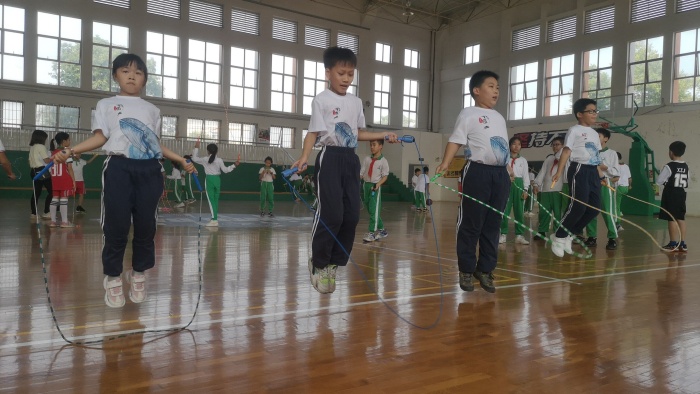 開幕式結束之后,投擲小布球、跳高、班級拔河比賽、障礙跨越、繩類項目等各項運動競技開展得如火如荼。運動員拼搏的身影形成了一道道亮麗的風景線。運動員們在賽場上揮汗如雨,奮勇向前,向著更快、更高、更強全力一搏。